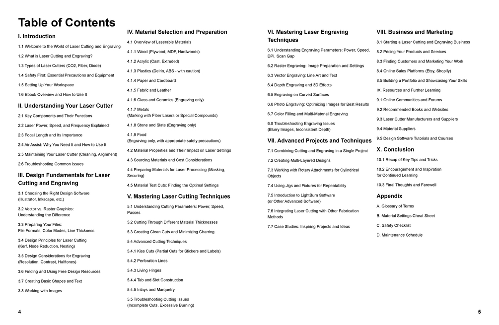 Unlock the incredible potential of your laser cutter! Whether you're a complete beginner or have some experience, "Laser Cutting & Engraving Tips and Tricks" is your comprehensive guide to mastering this exciting technology. This ebook is packed with practical advice, step-by-step instructions, and expert insights to help you create stunning projects with confidence.