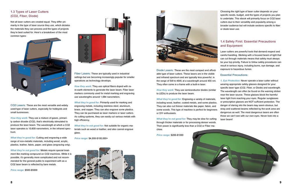 - Fundamentals of Laser Cutting & Engraving: Learn how laser cutters work, different types of lasers (CO2, Fiber, Diode), and essential safety precautions.